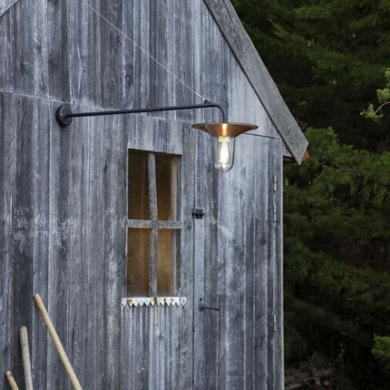 Wall bracket cooper in aluminium, E27, IP65, class 2, clear glass diffuser. Reflector Color RAL 2004 Pure orange 014 - Arm Color Velvet black 113. 25 year warranty anticorrosion