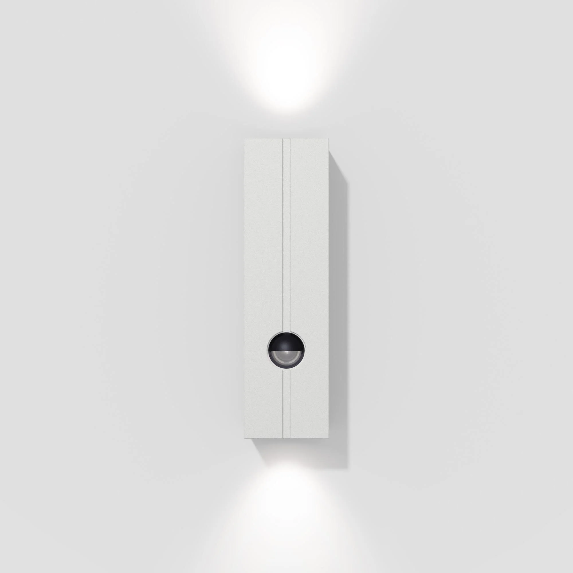 A luminaire offering security and aesthetics all in one: cut control features an integrated motion detector and has the same proportions as the cut up and downlight for a perfect pairing.