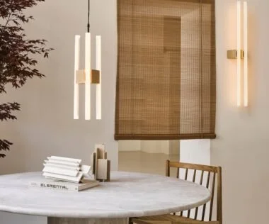Minimism is available as a single, double and triple wall version in oak matt natural or carbon black. The light source is available in 30, 50 and 100cm in 3000K, 2700K and 2200K and is dimmable.